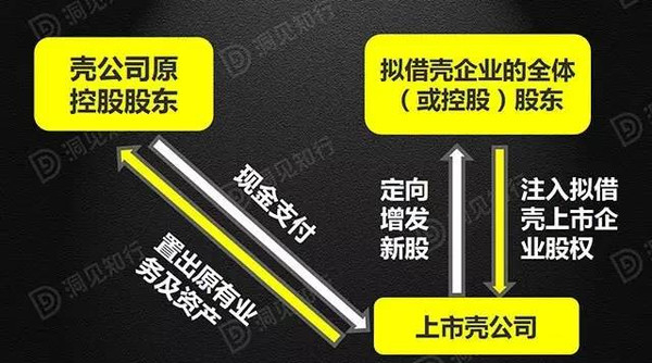 2、擬借殼企業控股股東取得殼公司的原有業務和資產后將其轉讓給殼公司原大股東,以換取后者所持有的殼公司股份,雙方差額部分以現金補足。